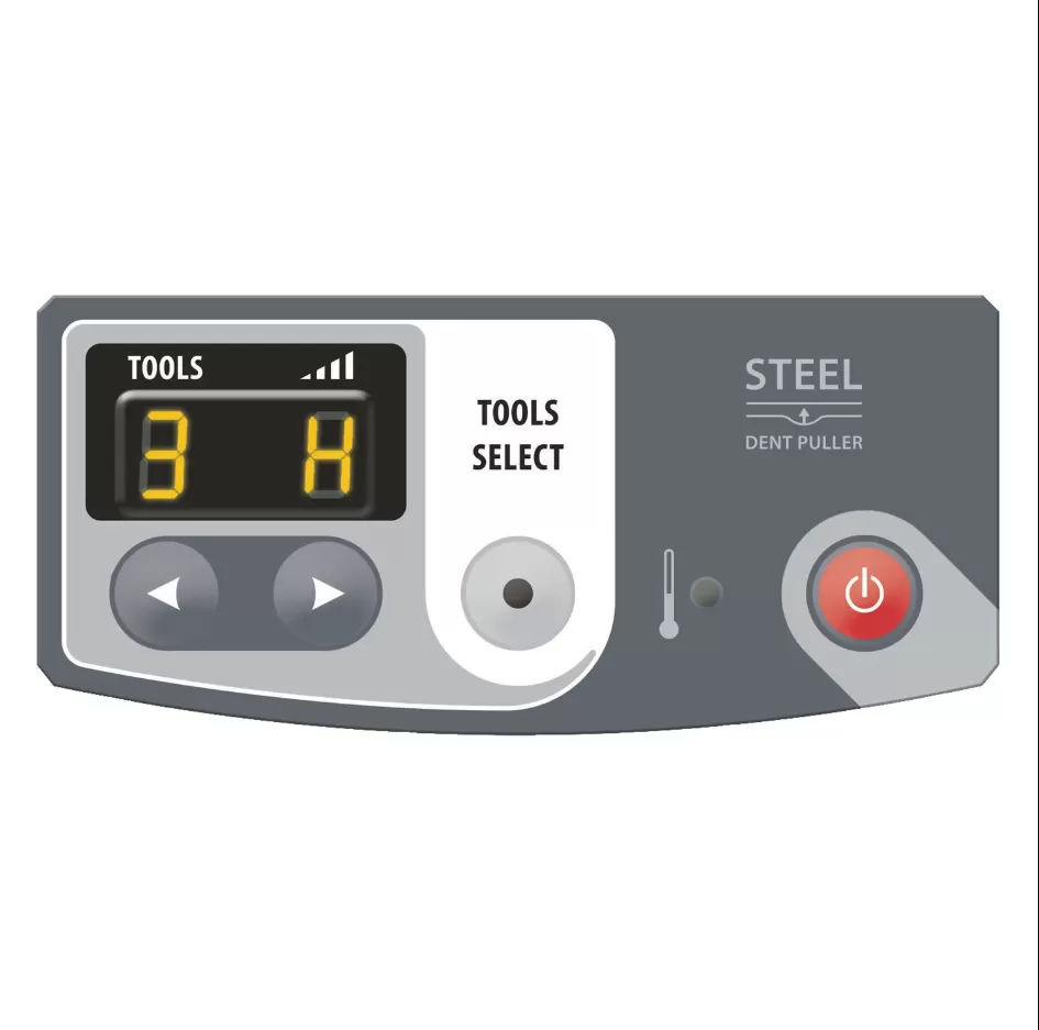 2 đồng hồ hiển thị hiển thị số, một hiển thị cấp độ công suất hàn và một hiển thị chế độ lựa chọn phương thức hàn.